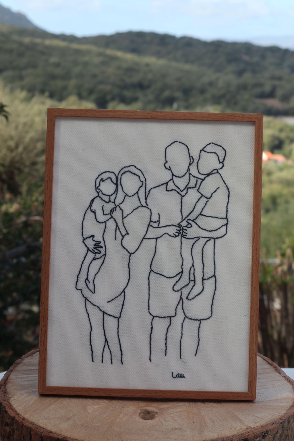 Exemple 1 : vous souhaitez un cadre brodé personnalisé, nous vous demanderons de nous envoyer la photo que vous souhaitez brodée. Nous vous proposerons un dessin au trait, un croquis de votre photo et vous laisserons choisir la taille, la couleur du fil et du cadre ainsi que la matière désirée. A l’écoute de votre retour, nous vous enverrons un devis puis un lien SumUp de paiement.
